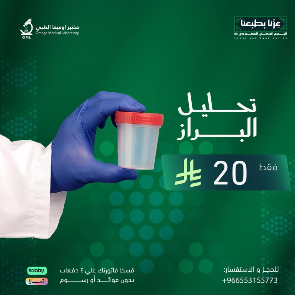 في مختبر أوميغا الطبي، نهتم بصحتك وراحتك، ونوفر لك خدمة تحليل البراز بدقة عالية وسرعة في الإنجاز، تحت إشراف نخبة من المختصين. احجز الآن واطمئن على صحتك وصحة أسرتك!